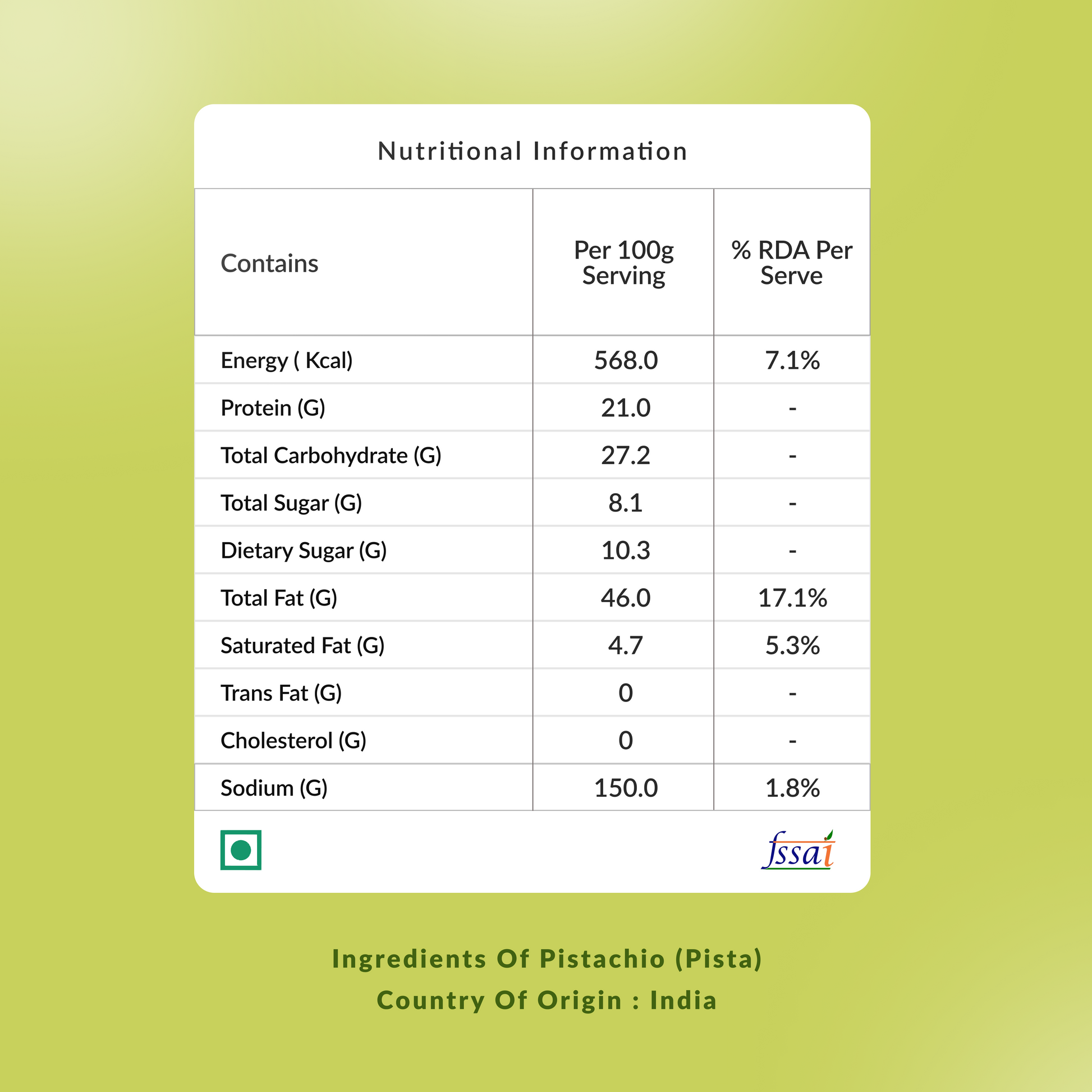 Roseate Farms Premium Pistachios are crunchy, nutrient-rich pista kernels, carefully selected and packed to preserve their natural taste and freshness. A powerhouse of protein, dietary fibre, and healthy fats, pistachios support heart health, digestion, and daily energy needs. Known for their naturally delicious flavor, these cholesterol-free and gluten-free nuts are a guilt-free indulgence for all age groups.